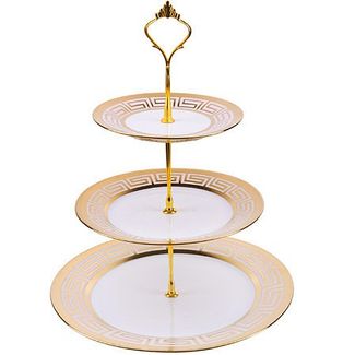 Конфетница 3-х ярусная LR (х12). Материал: керамика. Цвет: белый, золотой. Рисунок: золотой/желтый орнамент. Стойка: сталь. D нижнего яруса: 26,7 см. D среднего яруса: 20,3 см. D верхнего яруса: 15,2 см. Размер упаковки: 27,5 х 27,5 х 4,5 см. Упаковка: коробка. Вес: 1,5 кг. Страна производитель: Китай. Элегантная конфетница MAYER& BOCH, выполненная из керамики, сочетает в себе изысканный дизайн с максимальной функциональностью. Конфетница состоит из 3-х ярусов разного размера и предназначена для красивой сервировки конфет, фруктов и десертов. Круглые ярусы конфетницы оформлены оригинальным золотым орнаментом. Стойка-держатель конфетницы выполнена из стали. Конфетница украсит сервировку вашего стола и подчеркнет прекрасный вкус хозяина, а также станет отличным подарком. None