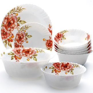 Набор посуды 19 пр МВ(х1). Форма: круглая. Материал: стеклокерамика. Цвет: белый, красные цветы. 6 десертных тарелок: D19 см. 6 больших тарелок: D 25,4 см. 6 глубоких тарелок: D17,8 см. Объем: 650 мл. 1 салатница: D 22,9 см. Объем: 1400 мл. Вес: 7843 г. Размер упаковки: 32,7 х 32,5 х 29,5 см. Страна производитель: Китай. Набор посуды MAYER& BOCH выполнен из стеклокерамики (опалового стекла) и декорирован красочным цветочным рисунком. Данный набор предназначен для сервировки обеденного стола на 6 персон. Форма изделий круглая. Классический дизайн сочетается в нем с максимальной функциональностью. Такой набор послужит отличным подарком к любому празднику, а также добавит элегантности и уюта любому праздничному столу! Посуда обладает гладкой непористой поверхностью, не впитывает запахи, устойчива к перепадам температуры и легко моется. В набор входит 6 десертных тарелок, 6 глубоких тарелок, 6 больших тарелок и 1 большая салатница. Подходит для мытья в посудомоечной машине. None