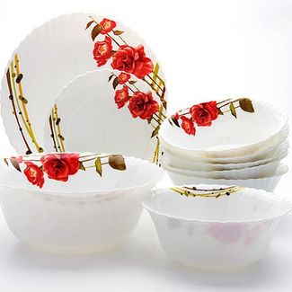 Набор посуды 19 пр МВ(х1). Форма: круглая. Материал: стеклокерамика. Цвет: белый, красные розы. 6 десертных тарелок: D19 см. 6 больших тарелок: D 25,4 см. 6 глубоких тарелок: D17,8 см. Объем: 650 мл. 1 салатница: D 22,9 см. Объем: 1400 мл. Вес: 7843 г. Размер упаковки: 32,7 х 32,5 х 29,5 см. Страна производитель: Китай. Набор посуды MAYER& BOCH выполнен из стеклокерамики (опалового стекла) и декорирован красочным цветочным рисунком. Данный набор предназначен для сервировки обеденного стола на 6 персон. Форма изделий круглая. Классический дизайн сочетается в нем с максимальной функциональностью. Такой набор послужит отличным подарком к любому празднику, а также добавит элегантности и уюта любому праздничному столу! Посуда обладает гладкой непористой поверхностью, не впитывает запахи, устойчива к перепадам температуры и легко моется. В набор входит 6 десертных тарелок, 6 глубоких тарелок, 6 больших тарелок и 1 большая салатница. Подходит для мытья в посудомоечной машине. None