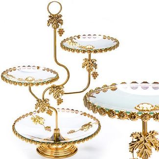 Элегантная конфетница LORAINE, выполненная из стекла, сочетает в себе изысканный дизайн с максимальной функциональностью. Конфетница состоит из 3-х ярусов разного размера и предназначена для красивой сервировки конфет, фруктов и десертов. Ярусы конфетницы оформлены оригинальным золотым орнаментом. Стойка-держатель конфетницы выполнена из стали с золотым покрытием. Конфетница украсит сервировку вашего стола и подчеркнет прекрасный вкус хозяина, а также станет отличным подарком. None