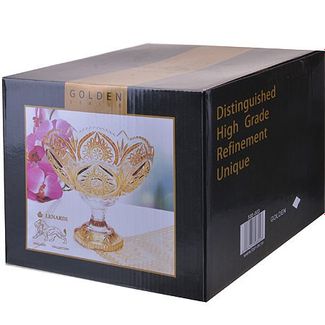 Конфетница на ножке(х12). Материал: стекло. Цвет: прозрачный, золотой. Высота: 17,5 см. Вес:1,550 кг. Размер упаковки: 22 х 22 х 18 см. Упаковка: коробка. Страна производитель: Китай. Конфетница для конфет выполнена из качественного прочного стекла и украшена золотым рисунком. Ваза предназначена для подачи различных сладостей: конфет, печенья, зефира, вафель, пряников и т.п. Изящная ваза для конфет станет прекрасным дополнением к набору посуды, отлично подойдет для сервировки праздничного стола, а также будет прекрасным подарком. Посуда обладает непористой поверхностью и не впитывает запахи. Легко и быстро моется. None