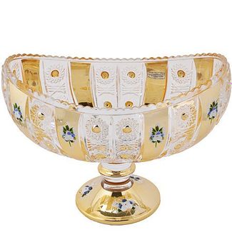 Конфетница на ножке(х12). Материал: стекло. Цвет: прозрачный, золотой. Высота: 14,5 см. Вес: 0,860 кг. Размер упаковки: 19 х 11 х 15 см. Упаковка: коробка. Страна производитель: Китай. Конфетница для конфет выполнена из качественного прочного стекла и украшена золотым рисунком. Ваза предназначена для подачи различных сладостей: конфет, печенья, зефира, вафель, пряников и т.п. Изящная ваза для конфет станет прекрасным дополнением к набору посуды, отлично подойдет для сервировки праздничного стола, а также будет прекрасным подарком. Посуда обладает непористой поверхностью и не впитывает запахи. Легко и быстро моется. None