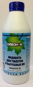 Универсальный уничтожитель запахов «Девон-Н» широкого спектра действия в виде жидкого концентрата. Основным компонентом жидкости является нитратный окислитель – это обычное азотное удобрение, поэтому жидкость «Девон-Н» не содержит формальдегида, кислот, щелочей, четвертичных аммонийных соединений. Является экологически безопасной, поскольку все компоненты подвергаются биологическому разложению. Кроме того, жидкость «Девон-Н» нетоксична, не вызывает раздражения кожных покровов и слизистой, легко смывается водой. При применении «Девон-Н» все органические отходы, в том числе фекальные массы, можно использовать в качестве одного из компонентов для изготовления компоста. None