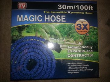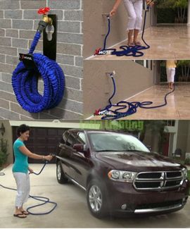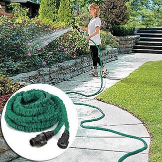 Шланг с удивительными свойствами. Он как по волшебству начинает растягиваться и самостоятельно выдвигаться как только в него поступает вода, его легко скрутить и убрать, он невероятно лёгкий и не занимает много места. Его спокойно подымет даже ребёнок.