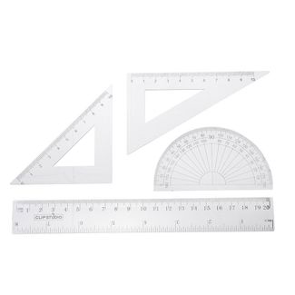 ClipStudio Набор геометрический 4 пр. (линейка 20см, 2 угольника, транспортир) прозрачный, в пакете линейка 20см Прозрачный