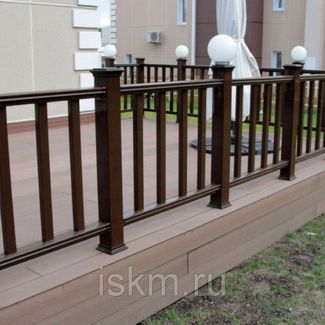 Предлагаем купить декоративные ограждения HOLZHOF / ХОЛЬЦХОФ из древесно-полимерного композита (ДПК) для террас, балконов, уличных кафе. Доставка по Санкт-Петербургу, Ленинградской области собственным транспортом и по всей России по дешевым ценам транспортных компаний. Надежные и долговечные декоративные ограждения HOLZHOF из ДПК придадут вашему дому на даче или двору неповторимую гармонию. Система декоративных ограждений эксплуатируется на открытом воздухе и благодаря своим защитным свойствам декоративные ограждения устойчивы к ультрафиолету и перепадам температур. Верхний слой профилей из ПВХ ― не подвергается механической обработке, что придает еще одно важное свойство – устойчивость к загрязнениям, поэтому уход не потребует от вас значительных средств и усилий. Система декоративного ограждения HOLZHOF из древесно-полимерного композита (ДПК) – это новейшее современное решение для ландшафтного дизайна, по своим характеристикам значительно превосходящее привычные предложения. Превосходство декоративного ограждения HOLZHOF/ Хольцхоф перед деревянными и металлическими ограждениями заключается в более высокой стойкости внешнего покрытия к атмосферным воздействиям. Надежная и долговечная система декоративных ограждений HOLZDORF придаст вашему двору неповторимую гармонию. Жители западной Европы и США по-достоинству оценили комфорт и эстетичность таких систем, и теперь мы сделали это доступным для Вас! Ограждение для террас HOLZHOF не нуждается в дополнительной обработке и защите. Заборы HOLZHOF будут долго и надежно служить Вам, сохраняя свою красоту и прочность. Ограждения из ДПК собираются из столбов, перил и балясин. Длина всех изделий ― 4м. Распил в требуемый размер осуществляется инструментом по дереву (торце