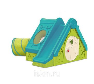 Детский домик FUNTIVITY PLAYHOUSE Крыша детского домика FUNTIVITY PLAYHOUSE выполнена в форме горки с одной стороны и лесенки с другой. Дети могут лазить через дверь и, через окошки. Труба-лаз выполнена из прочной ткани и станет дополнительным развлечение для малышей. Домик выполнен в сказочном стиле, который понравится и мальчикам и девочкам. Детский домик FUNTIVITY PLAYHOUSE выполнен из прочного нетоксичного пластика без острых углов и деталей.