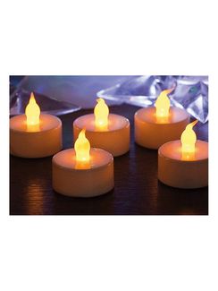 Идеальная альтернатива свечам, которые могут нанести ожог или запачкать мебель! Комплект из 12 светодиодных электронных свечей На вид это – обычный набор свечей-таблеток. Но только вы будете знать, что изделия просто имитируют пламя. Вы можете без опасений прикоснуться к ним.