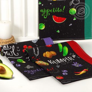 Закажите Комплект кухонных полотенец из рогожки "Кулинарное шоу" 45х60 см (3 шт) у компании Meleğim-текстиль в России на портале Alloy: