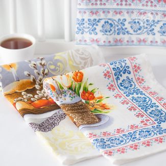 Закажите Комплект кухонных полотенец из рогожки "ВОСКРЕСЕНИЕ" 45х60 см (3 шт) у компании Meleğim-текстиль в России на портале Alloy: