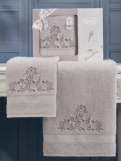 Закажите Комплект махровых полотенец "KARNA" ABEL 50х90-70х140 см цвет сиреневый у компании Meleğim-текстиль в России на портале Alloy:
