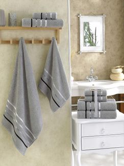 - Комплект махровых полотенец "KARNA" BALE серый 50х80 см (2 шт) и 70х140 см (2 шт) по выгодной цене 2 529 р. руб.;