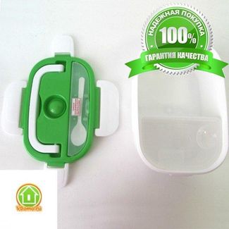 Страна-изготовитель: Китай"Откажитесь от вредного фастфуда на работе! Ланч-бокс с электрическим подогревом Теперь вы сможете навсегда отказаться от бутербродов и фастфуда. Главное условие работы ланчбокса – наличие электросети. Компактный контейнер, состоящий из двух элементов, легко помещается в сумку. А чтобы подогреть обед, вам нужно просто подключить контейнер к электросети. Вы можете в маленькое съемное отделение отправить салат, а в большое – гарнир с мясом, который нуждается в подогреве. Это – прекрасный подарок для человека, который проводит много времени на работе, а также заботится о своем здоровье и фигуре. А цена на ланч-бокс с электрическим подогревом в интернет магазине VDomo приятно вас удивит! Подробнее о частях ланч-бокса и его возможностях Корпус состоит из прочного пищевого пластика. Главное – пища внутри не испортится до обеда, если вы выезжаете на работу рано утром; Съемный контейнер имеет герметичную крышку, потому вы сможете без проблем налить туда первое блюдо или соус. Будьте уверены, конструкция не раскроется, благодаря наличию четырех крепежных элементов с силиконовым уплотнителем; Пенал с пластиковой ложкой создан для того, чтобы вы могли пообедать с максимальным комфортом. А при желании вы можете отправить туда ложки, вилки или ножи из дома; На подогрев еды у вас уйдет всего 25 минут. Подключите контейнер к сети 220 вольт и вскоре вы сможете насладиться вкусной и полезной домашней пищей! Технические характеристики Цвет: микс; Материал: безопасный и надежный пищевой пластик; Питание: сеть 220 В; Мощность подогревателя: 40 Вт; Время подогрева пищи: около 25 минут; Объем бокса: 1,05 литра; Объем маленького съемного отделения: 450 мл; Объем большого не съемного отделения: 600 мл; Размеры: 24 х 17 х 10 см; Размеры упаковки: 24 х 17 х 12 см. <