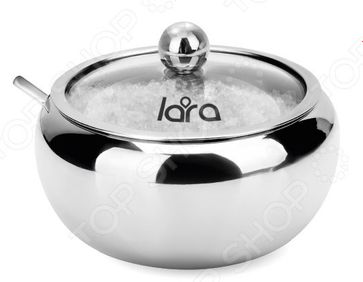 Сахарница с ложкой LARA LR08-36 станет украшением вашего стола. Красивое оформление стола как праздничного, так и повседневного это целое искусство. Правильно подобранная посуда это залог успеха в этом деле. Такая сахарница придется по вкусу даже самым требовательным хозяйкам и придаст особый шарм и очарование сервируемому столу. Данная модель изготовлена из прочной нержавеющей стали высокого качества и отличается классическим дизайном. Сахарница закрывается удобной крышкой, также в комплекте идет и специальная ложечка. Такая сахарница понравится любителям яркого оригинального дизайна и станет неотъемлемым атрибутом чаепития. Незаменимая вещь в чайной церемонии! Объем сахарницы составляет 560 мл. Благодаря лаконичности и сдержанности станет прекрасным дополнением на вашей кухне. Очень удобна и практична в использовании. None Возможен самовывоз. Есть доставка.