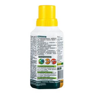 Способ применения: Полив грунта перед посевом: 30 мл (1 колпачок) на 1л воды. Корневая подкормка: 30 мл (1 колпачок) препарата растворить в 10л воды. Полив производится 1 раз в 10 дней. Неконевая подкормка: 15 мл (1/2 колпачка) препарата растворить в 10л воды. Опрыскивание во время вегетации 1 раз в 7 дней. Срок годности: не ограничен. None