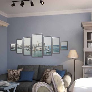 Модульная картина Династия 06-068-05 Морской порт. Материал: песок. Багет: дерево. Размер модулей: - 17,523,5 см; (2 части) - 19,545,5 см; (2 части) - 23,557,5 см; (2 части) - 30,571,5 см; (1 часть) Общий размер: 163*71,5 см None