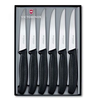 Набор из 6 ножей для стейков Викторинокс, лезвие из нержавеющей стали 11 см с серейторной заточкой, пластиковая чёрная рукоять, в подарочной коробке None Возможен самовывоз.