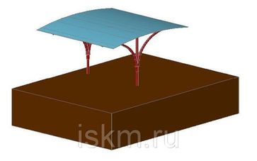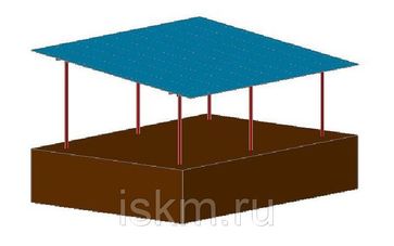 Установка навесов происходит на винтовые сваи или традиционный железобетонный фундамент с помощью фундаментных болтов.