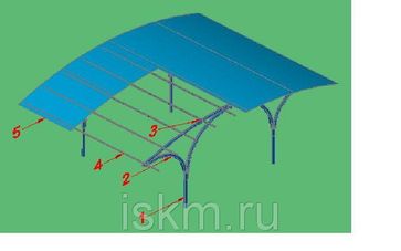 Конструкция состоит из профильных металлических труб покрашенных порошковой краской. Сверху навес покрывается сотовым поликарбонатом.