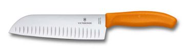 Нож Сантоку Викторинокс SwissClassic, рифлёное лезвие из нержавеющей стали 17 см, оранжевая пластиковая рукоять, в картонном блистере None Возможен самовывоз.
