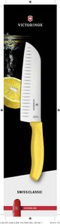 Нож Santoku Викторинокс SwissClassic, рифлёное лезвие из нержавеющей стали 17 см, жёлтая пластиковая рукоять, в картонном блистере None Возможен самовывоз.