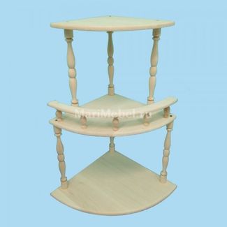 Двух -трёхъярусная полка из липы является достаточно вместительной и при этом не займет много места даже в самом маленьком помещении. Она предназначается для установки в угол. Второй ярус меньше первого, а третий вместо второго, благодаря чему обеспечивается визуальная легкость конструкции. Особый шик изделию придают точёные балясины.