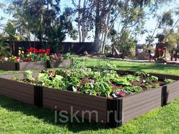 Практически вечные правильные грядки изготовлены из садовой доски на основе древесно-полимерного композита ДПК, что значительно продлевает срок службы изделия по сравнению с натуральным деревом.