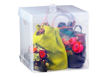 Прозрачная коробка для вещей. Размеры: 38 х 38 х 38 см. Переделайте Ваш гардероб. Разместите в прозрачных коробках ваши стильные вещи. Так их легко будет найти. Благодаря удобным отверстиям по бокам коробки Вы можете перемещать ее по всей квартире.
