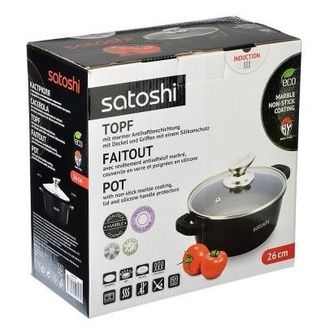 - SATOSHI Лион Кастрюля с крышкой 5,8л d26*12см, а приг.покр.Мрамор, силик.протекторы ручек, индукция Черный по выгодной цене 3 168 р. руб.;