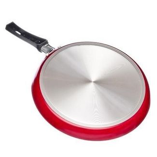 Сковорода блинная диаметром 25 см из штампованного алюминия с 2-х слойным антипригарным покрытием Akzo Nobel черного цвета изнутри и красной краской снаружи, с бакелитовой ручкой черного цвета с петлей для подвешивания - подходит для всех типов плит, кром None Возможен самовывоз. Есть доставка.