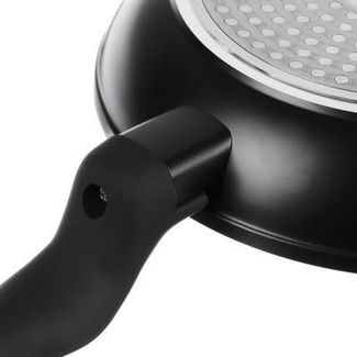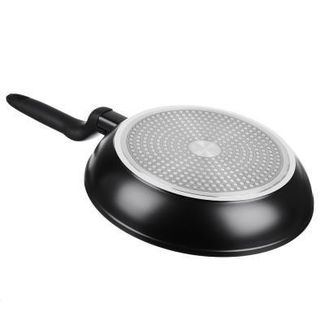 Сковорода диаметром 24 см из литого алюминия с каменным антипригарным покрытием черно-белого цвета, с бакелитовой черной ручкой с покрытием "софт-тач" эргономичной формы и с петлей для подвешивания, с индукционным дном - подходит для использования на всех None Возможен самовывоз. Есть доставка.