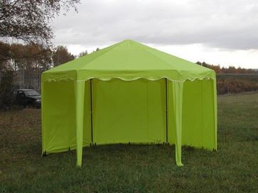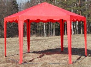 В этом шатре площадью 10,4 кв. м. комфортно разместится 12 человек Оригинальный шатер с шестискатной крышей можно использовать как летнее кафе, дачную беседку или павильон для торговли. Стальной каркас шатра имеет нижнее основание, все его части надежно крепятся между собой. Крестовины сделаны из утолщенной трубы, что позволяет повысить устойчивость конструкции. Стропы и липучки помогают хорошо натянуть тент. что позволяет сделать его частично или полностью закрытым. Для фиксации элементов каркаса, между собой, используются кнопки - защёлки. Соединительные элементы (крестовины) выполнены из стальной трубы увеличенной толщины. Для этой модели Вы можете дополнительно приобрести стенки: с окном, без окна, с сеткой. Также не забудьте купить комплект колышков, чтобы хорошо растянуть Ваш шатер и сделать его еще более крепким и ветроустойчивым. Инструкция по эксплуатации тентов садовых Пикник 6-граней None