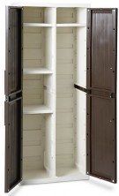 Шкаф WOOD LINE S, 2-х дверный с 4 полками Размеры: длина - 65, ширина - 37, высота - 165 см. Цвет: корпус - молочно белый, двери - коричневые. Размеры в упаковке: 65 x 37 x 85 см. Материал изделия: пластик. Макс.нагрузка на полку: до 20 кг. Предназначен: для уличного хранения: хоз.инвентаря, садовых инструментов и пр. для домашнего хранения: овощей, солений, хозяйственного инвентаря и пр., для производств: хранение архивных документов, оборудования и пр., <span style=
