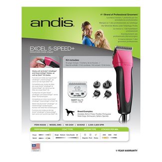- Машинка для стрижки животных 5ти скоростная Andis SMC Excel 5-Speed+ Fuchsia по выгодной цене 17 010 р. руб.;