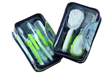 Набор аксессуаров Safety 1st по уходу за малышом в футляре (8 предметов)- удобный набор по уходу за ребенком. Так как данный набор в футляре, его легко брать везде с собой. Все инструменты изготовлены из качественных материалов.В набор входит:щетка для волос;гребешок для волос;мягкая зубная щетка;щипчики для ногтей;ножницы со стопором безопасности;силиконовая зубная щетка-массажер;2 пары рукавичек;8 мягких пилочек для ухода за ногтями. None