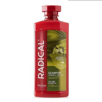 Шампунь, который придает объем тонким и нежным волосам с тройной силой. Дает длительный объем, а при систематическом использовании увеличивает толщину волос и защищает от повреждений. Радикал - это настоящий прорыв в уходе и борьбе с выпадением волос. Это гарантирует тройной эффект: укрепляет волосы, улучшает их динамику и эластичность, обеспечивает больший объем и защищает от повреждений. Его впечатляющий эффект обусловлен богатой формулой, основанной на чрезвычайно эффективных и концентрированных ингредиентах, таких как: