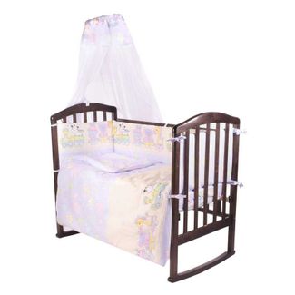 Комплект для стандартной прямоугольной кроватки (под размер матраца 12060 см). Размеры: Борт 38360 см (4 части) Балдахин 150350 см Пододеяльник 147112 см Наволочка 4060 см Простыня на резинке 12060 см Одеяло 137107 см Подушка 3858 см Состав: Наполнитель (борт) - файберпласт - 100% ПЭ. Плотность - 350г/м2; Наполнитель (одеяло) - термофайбер - 100% ПЭ. Плотность - 150г/м2; Наполнитель (подушка) - термофайбер - 100% ПЭ. Плотность - 300г/м2. Ткань - 100% хлопок; Балдахин (сетка) - 100%ПЭ Минимальная сумма заказа 500 руб.