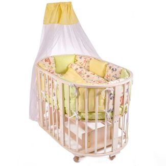 Оригинальный комплект для овальной (круглой) кроватки. Комплектация/размеры: 19 предметов: Борт состоит из 12 подушек размером 3030 см. Подушечки объемные. Балдахин 150350 см Пододеяльник 147112 см Наволочка 4060 см Простыня на резинке 12575 см Простыня на резинке 7575 см Одеяло 137107 см Подушка 3858 см Состав: Наполнитель (бортики-подушки) - термофайбер - 100% ПЭ. Плотность - 900г/м2; Наполнитель (одеяло) - термофайбер - 100% ПЭ. Плотность - 150г/м2; Наполнитель (подушка) - термофайбер - 100% ПЭ. Плотность - 300г/м2. Ткань - 100% хлопок; Балдахин (сетка) - 100%ПЭ Минимальная сумма заказа 500 руб.