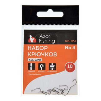 - AZOR FISHING Набор крючков 10шт, Абердин №4,6,8,10, высокоуглеродистая сталь, черный никель № 4,6,8,10 в каталоге Другие товары для туризма и путешествия в России;