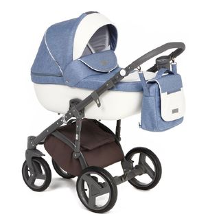 Закажите Коляска Adamex MASSIMO кожа белая+синий V10 у компании Jetem24.ru в России на портале Alloy: