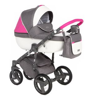 - Коляска Adamex MASSIMO SPORT кожа белая+серый+малиновый V102 по выгодной цене 24 450 р. руб.;