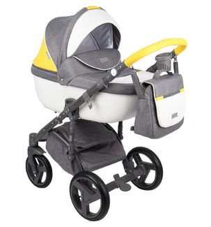 - Коляска Adamex MASSIMO SPORT кожа белая+серый+желтый V105 по выгодной цене 24 450 р. руб.;