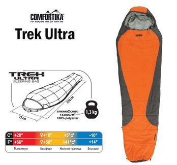 - Спальник Comfortika Trek Ultra R 220x75x45 см с подголовником +10C -10C по выгодной цене 2 755 р. руб.;