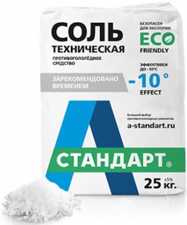 - А-СТАНДАРТ реагент соль техническая -10°C (25 кг) А-СТАНДАРТ реагент противогололедный соль техническая -10°C (25 кг) по выгодной цене 332 р. руб.;