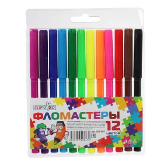 - ClipStudio Фломастеры 12 цветов, с цветным вент.колпачком, большие, смываемые, пластик, в ПВХ пенале 12 цветов по выгодной цене 78 р. руб.;