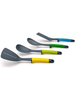 Набор кухонных инструментов Joseph Joseph Elevate разноцветный изготовлен из нейлона, устойчивого к воздействию высоких температур. Продуманная конструкция приборов с утяжеленной ручкой позволяет удерживать загрязненную часть над рабочей поверхностью не пачкая ее. В набор входит 4 предмета: ложка, шумовка, лопатка-шумовка и гибкая лопатка. Наличные, Visa/MasterCard, Яндекс.Деньги, WebMoney Возможен самовывоз. Есть доставка.