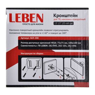 - Кронштейн для ТВ 13"-27" наклонно-поворотный LEBEN, до 15 кг, металл по выгодной цене 795 р. руб.;