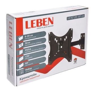 Наклонно-поворотный кронштейн торговой марки LEBEN предназначен для размещения телевизора с диагональю от 14" до 42", вес которого составляет не более 30 кг.