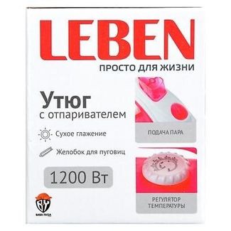 - LEBEN Утюг с отпаривателем 1200 Вт, подошва - антипригарное покрытие, прозрачный корпус Розовый по выгодной цене 1 168 р. руб.;