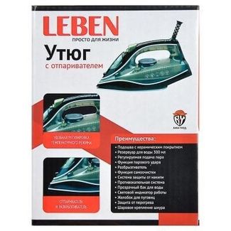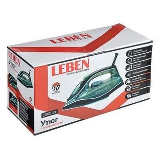 - LEBEN Утюг с отпаривателем 2000 Вт, подошва - керамическое покрытие, зеленый Зеленый по выгодной цене 3 188 р. руб.;